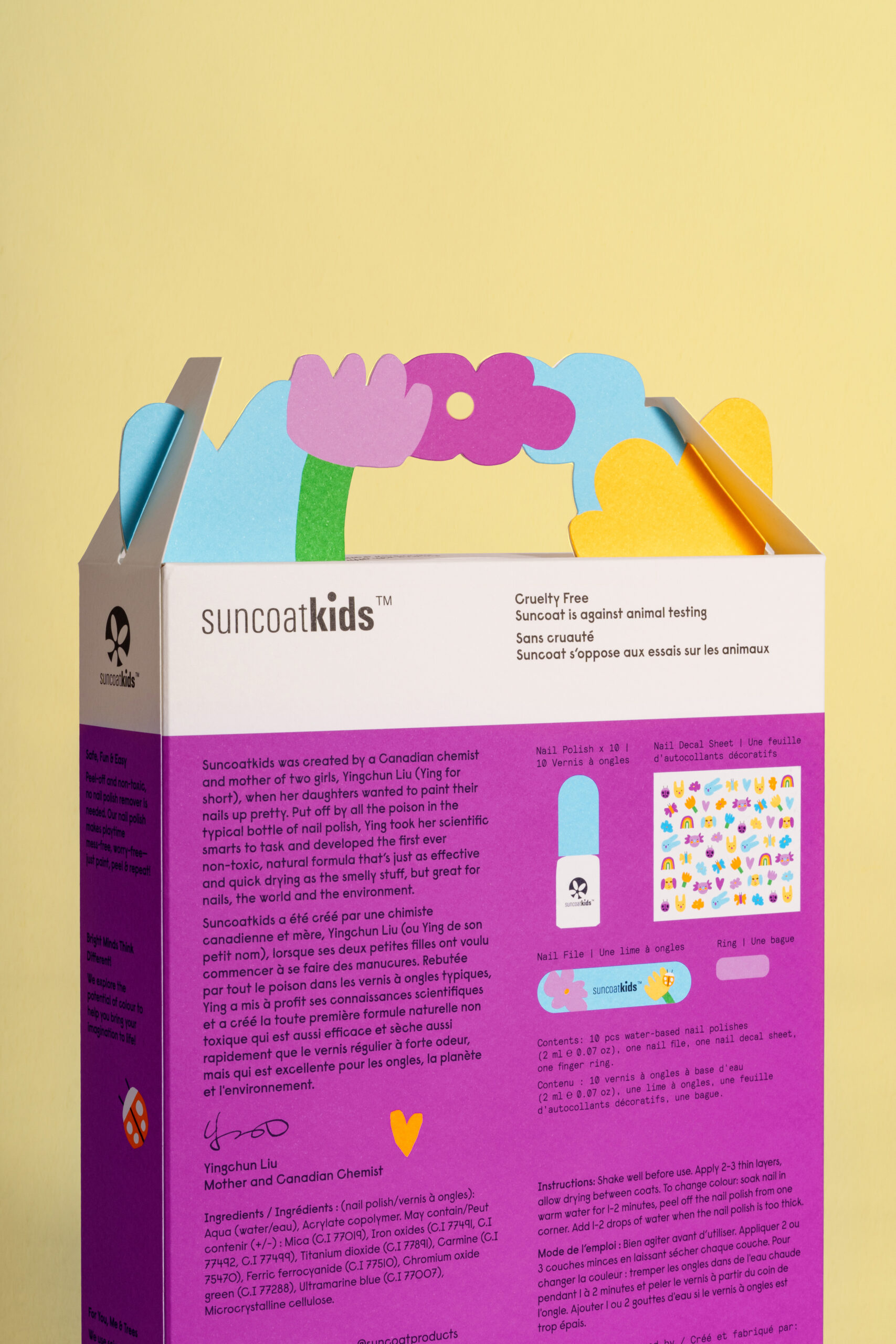 Suncoat Kids is a non-toxic kids nail polish brand that brings together science and imagination through playful, purposeful packaging. Designed from the lens of a child, the packaging channels curiosity, creativity, and reuse.